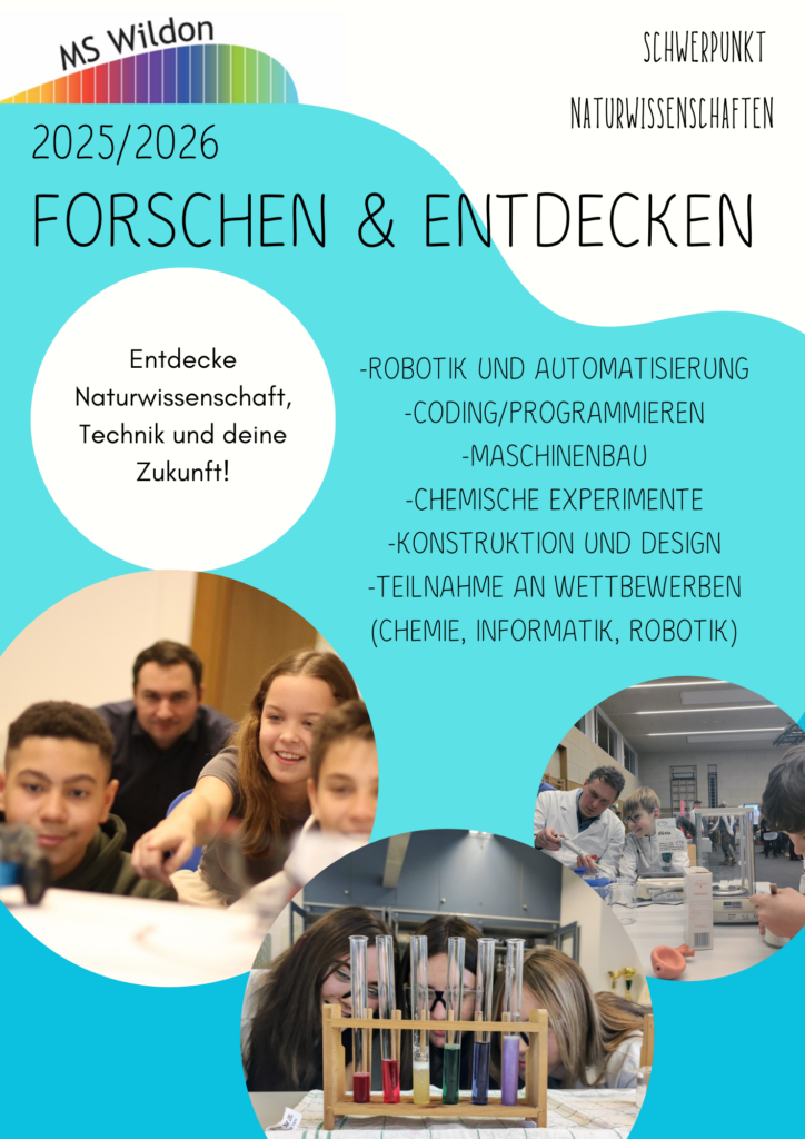 Die Mittelschule Wildon ist eine zertifizierte Glücksschule. Neben dem Wissenserwerb stehen für uns Individualisierung und Kindeswohl im Vordergrund. Der Erwerb solider Grundkenntnisse in den Bereichen Lesen, Schreiben und Rechnen liegt uns am Herzen. Schwerpunkte setzen wir bei der Förderung der Lesekompetenz, der Digitalisierung und den Naturwissenschaften.